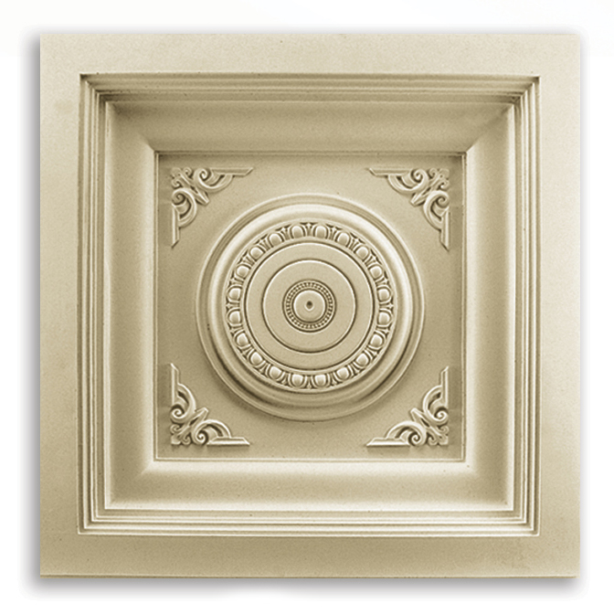 Caisson. Originelles dekoratives Element aus Polyurethan. Er wird zur Dekorierung der Vertiefungen in der Decke verwendet. Möglich ist die Findung origineller Designlösungen für Arbeitszimmer, Bibliot