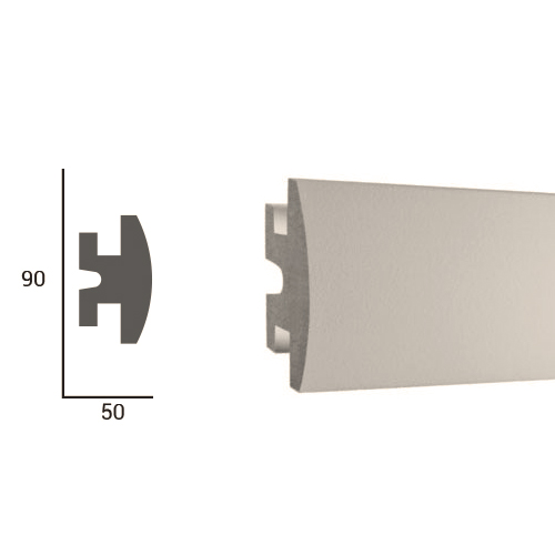 LD305 is a profile used for decorative lighting installing. Smooth shape of this profile will certainly accentuate the softness of the room created by the installation of indirect lighting. It is lightweight and moisture resistant. This crown moulding for indirect light instalation will certainly modernise any interior.