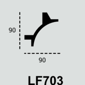 LF703 is a profile used for installing LED illumination. When fixing to the joint between the wall and ceiling allows to set the lighting on both sides - to wall and ceiling. This indirect ceiling lighting is easy to use and it gives an unusual effekt of room lighting. The use of this molding allows to create original lighting design of space.