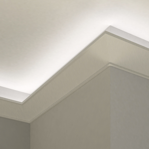 PC 181 is a multifunctional profile that can be used as a ceiling crown moulding, as a cornice, as a skirting board on the floor or as a profile for backlight installation. Its sizes are 87 mm*55 mm and its length is 2440 mm. Using this multifunctional profile it is easy to hide wires, joints and irregularities of the walls, bypass the column or to zone room space using the lights. Design of this profile involves a so-called angle positioned shelf, which greatly extends the usage of the profile. Use PC 181 to install lighting and create an incredible design lighting solutions, which are so popular now. You can use fluorescent or halogen lamps, LED or neon lights to do that. Multifunction polyurethane moldings are lightweight and durable, they are easy to be installed, do not require special care, if desired, can be painted in any color.